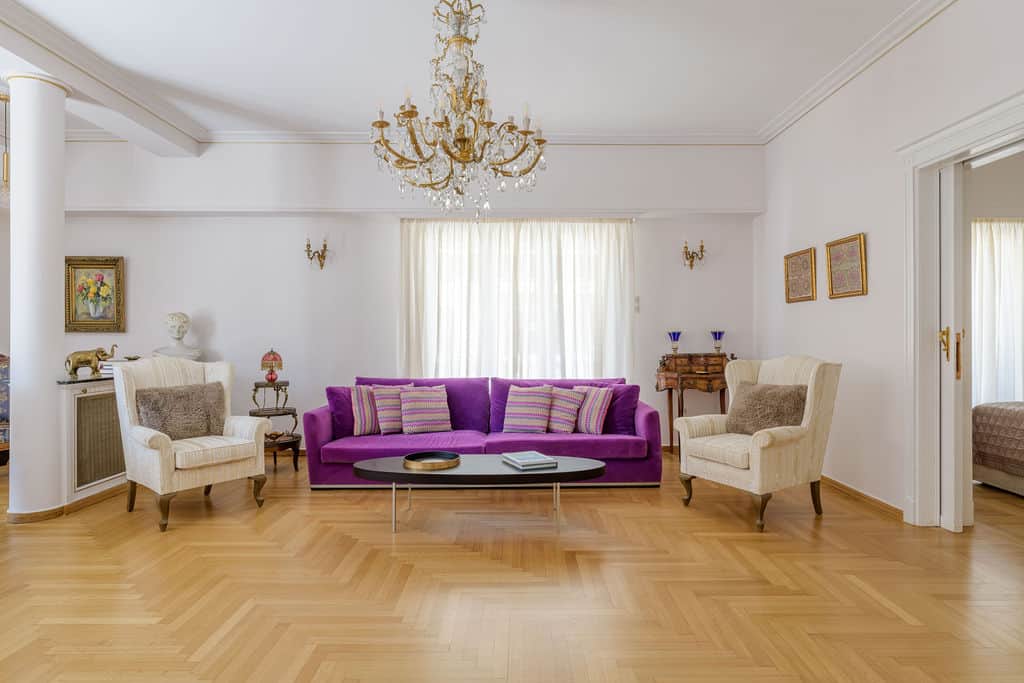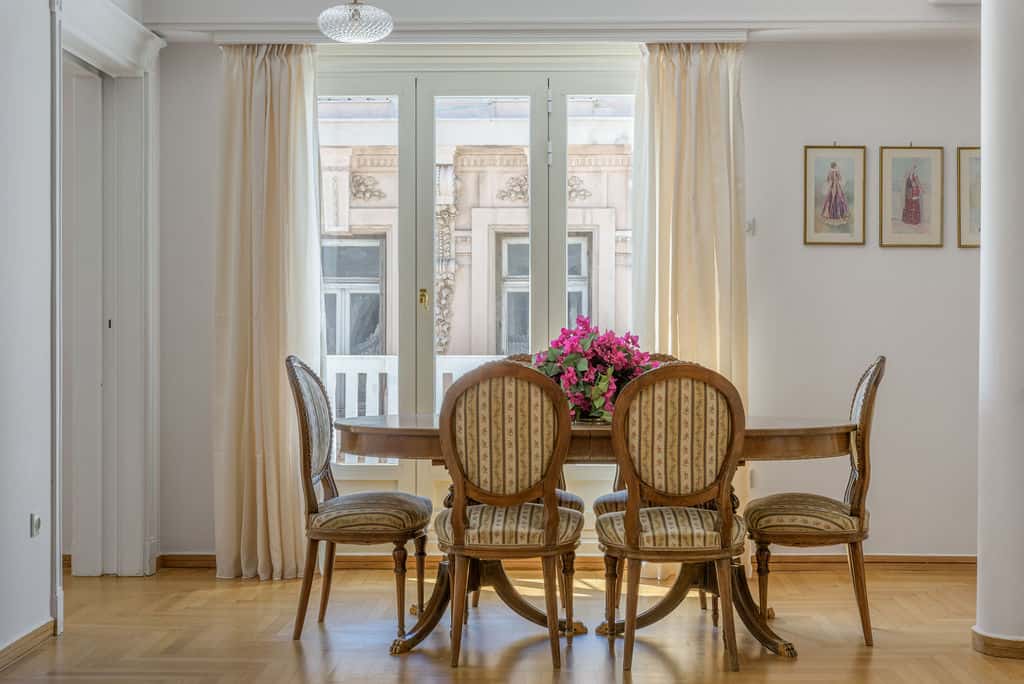 One of the most impressive areas of the apartment is the spacious living room. A space that perfectly combines old-world luxury with modern comforts. Antique chandeliers, original works of art, and a plush Maxalto sofa create one of the most welcoming atmospheres that will offer you unforgettable moments of relaxation.